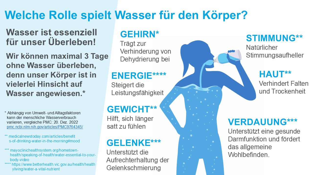 Wasser ist entscheidend für die Gesundheit und das Wohlbefinden.